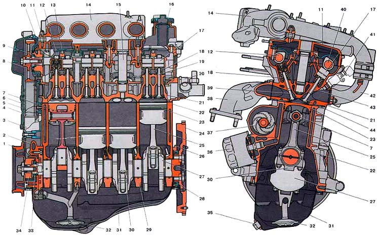 Бензиновый, четырехтактный, четырехцилиндровый, рядный, с поперечным расположением, шестнадцатиклапанный, с двумя распределительными валами. Порядок работы цилиндров: 1-3-4-2, отсчет - от шкива коленчатого вала. Система питания - фазированный распределенный впрыск. Управление двигателем - контроллер (Bosch, "Январь" или GM). Большинство двигателей оснащается нейтрализатором отработавших газов.
